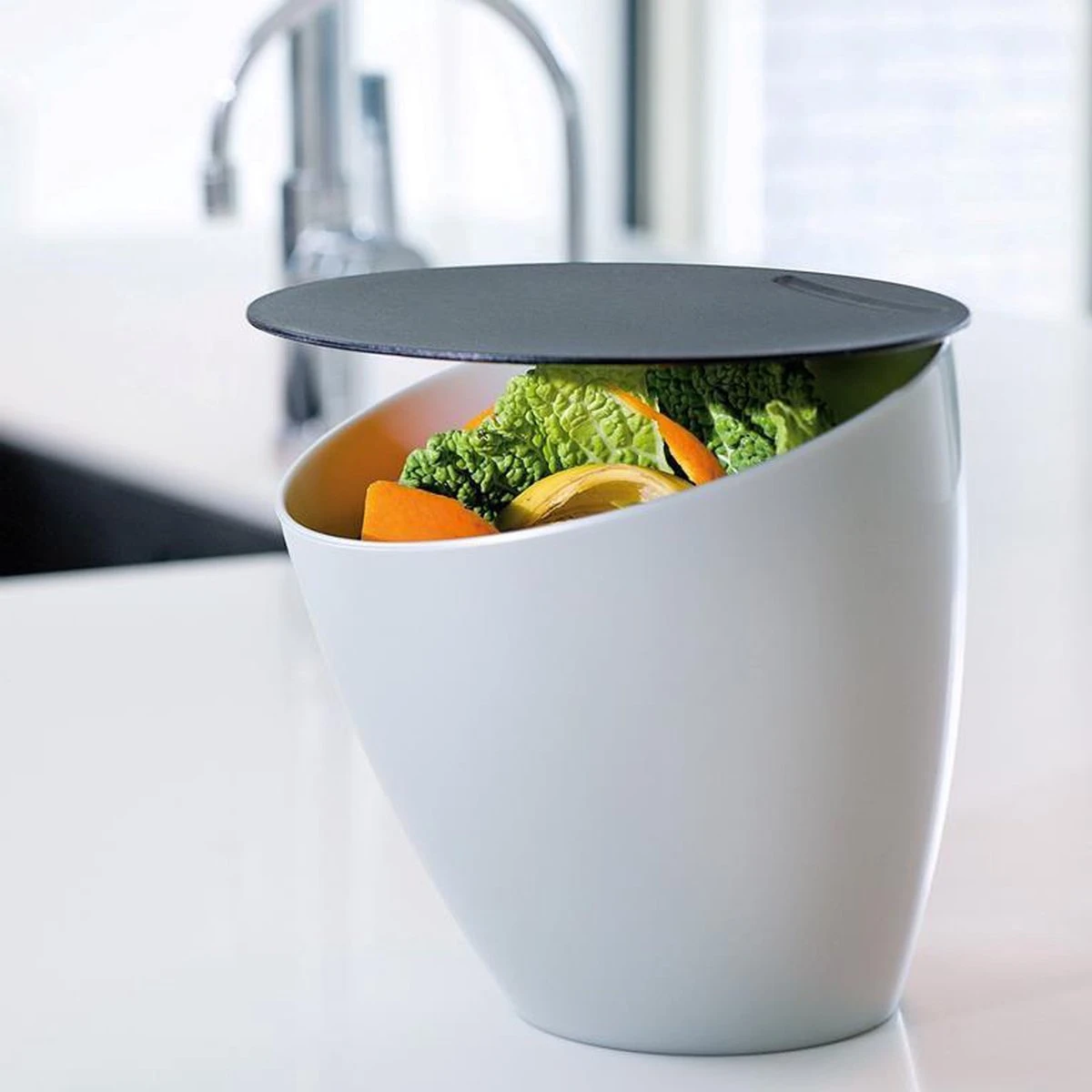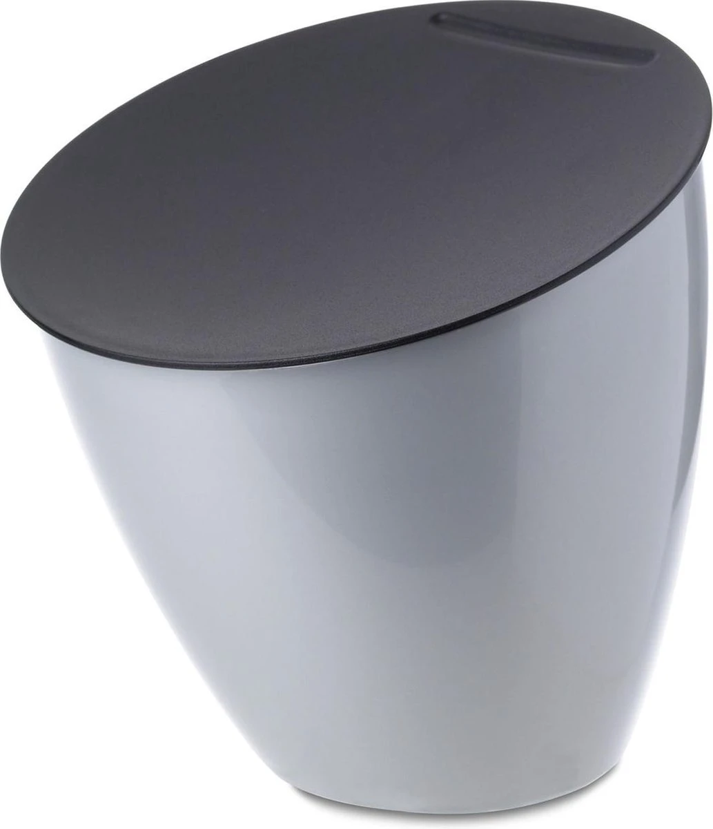 Afvalbakje Calypso in de kleur Zilver. Geen handiger afvalbakje voor op het aanrecht dan de Calypso van Mepal. Deze afvalcontainer neemt weinig ruimte in, heeft een grote vulopening, werkt zonder zakjes, is draagbaar en gemakkelijk te reinigen. Voor koffiepads en al uw kleine keukenafval! Het afvalbakje is te gebruiken in de keuken en badkamer.