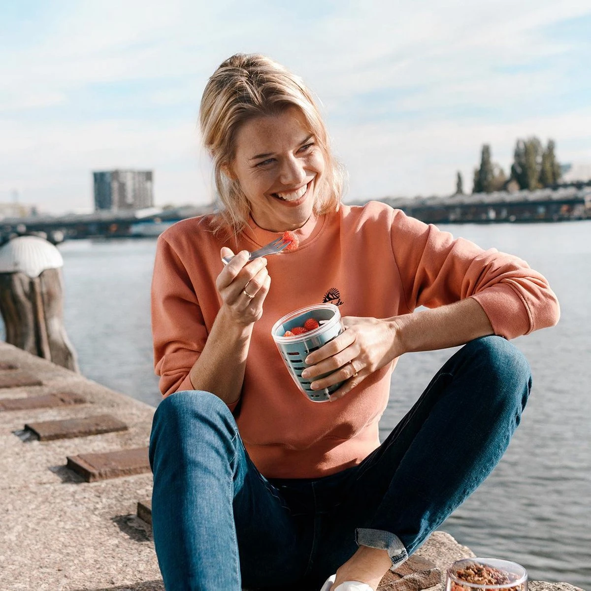 Mepal fruit- & veggiepot Ellipse in wit. Gezonde snoepers opgelet: meer groente en fruit eten wordt je vanaf nu wel héél makkelijk gemaakt. De fruitbox van Mepal is speciaal ontworpen om je fruit of groente ter plekke te wassen. Verse aardbeien prikken achter je computer of een vieruurtje van snoeptomaatjes in de trein… kom maar door met die vitamines! Het vergietje in de pot is zo ontworpen dat je jouw groente en fruit ter plekke even af kunt spoelen. Doordat er een beetje ruimte overblijft op de bodem kan je snack uitlekken zonder dat jij daar last van hebt. Een handig RVS vorkje wordt meegeleverd, zodat jij kunt genieten van de ideale snackbox voor onderweg! Natuurlijk mag de fruit- en veggiepot na gebruik gewoon in de vaatwasser. Ook heel handig: de deksels van de fruit- & veggie-, lunch- en snackpotten zijn onderling uitwisselbaar. De fruitbox is ook geschikt als snackbox of snackdoosje voor kinderen.