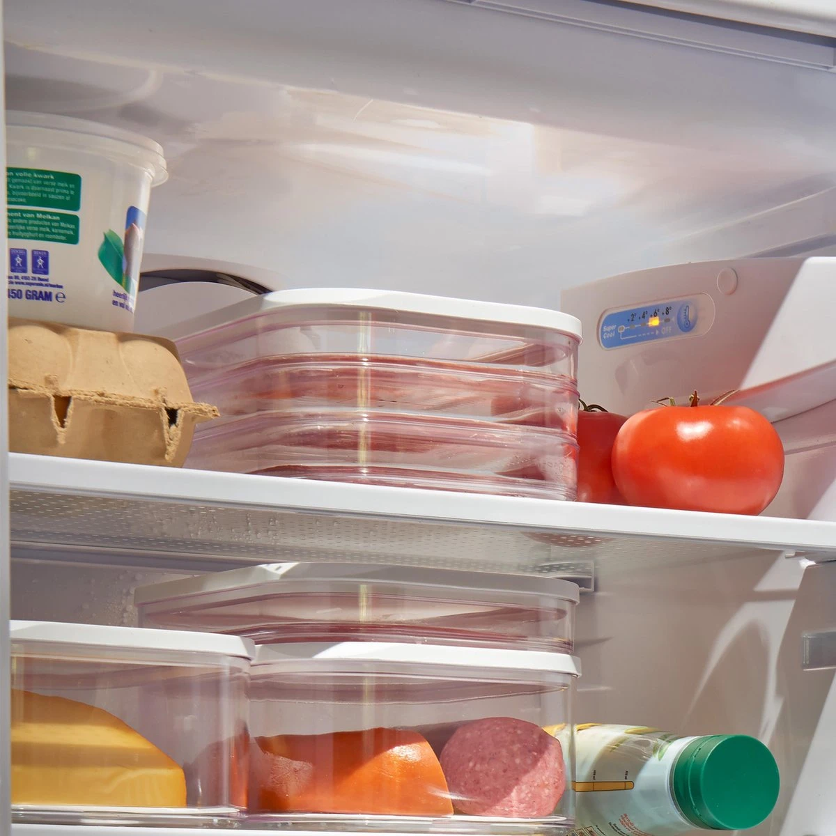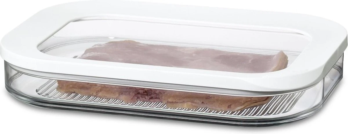 Mepal – Vleeswarendoos Modula 1-laags – Wit – Bewaardoos Met Deksel – Zicht Op Inhoud – Stapelbaar – Koelkastdoos