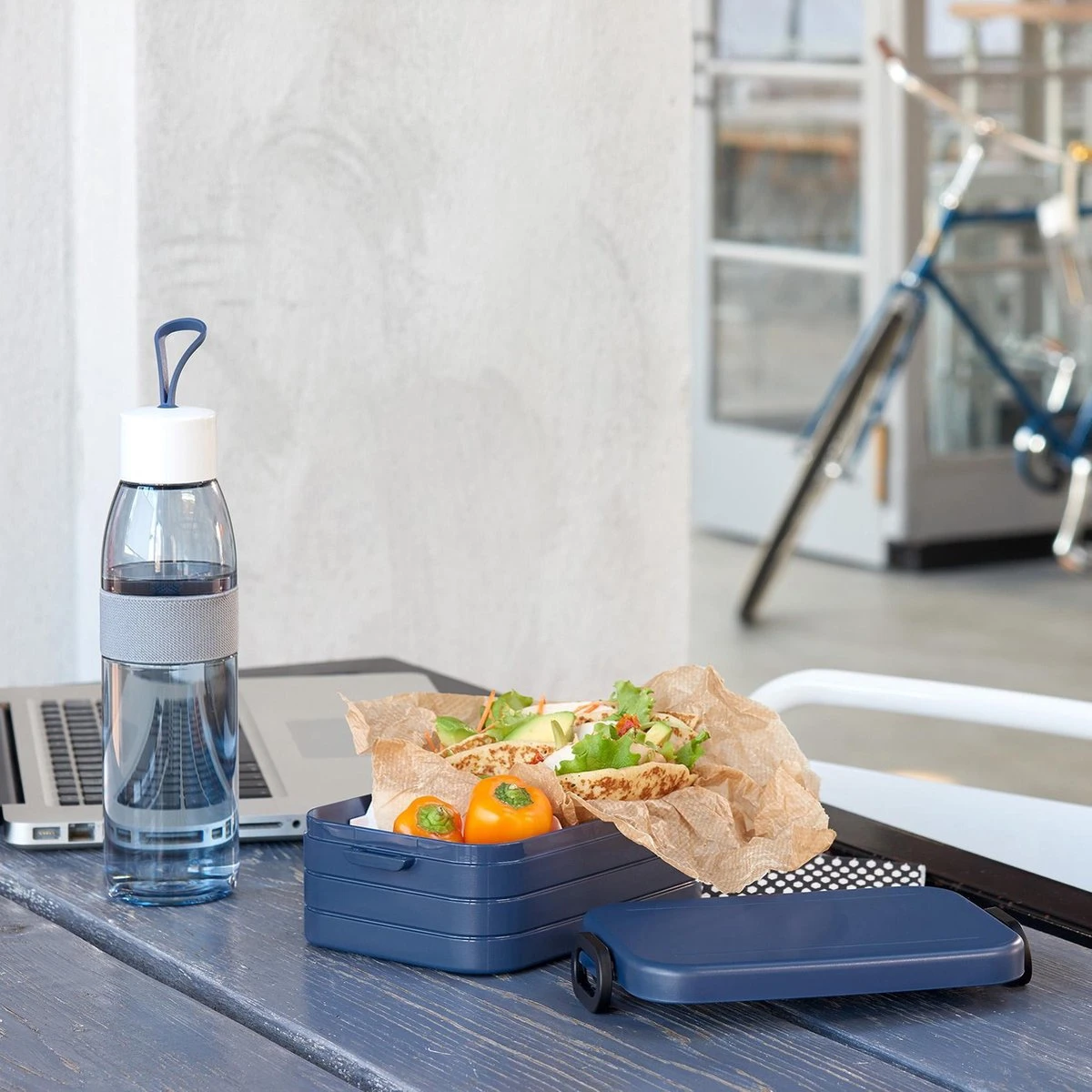 Waterfles Ellipse 700 ml in de kleur Nordic denim. Gezond, milieubewust en voordelig, dat is deze hippe, hervulbare waterfles van Mepal. Handig voor op het werk, tijdens het sporten of tijdens uw vrijetijdsbesteding. De dop kan heel eenvoudig worden opengedraaid en is voorzien van een lusje, waarmee de drinkfles gemakkelijk kan worden meegenomen. De Ellipse drinkfles voor volwassenen bevat géén BPA of weekmakers, is vaatwasserbestendig en 100% lekvrij! Berg de fles na het reinigen zonder dop op. De dop kan eenvoudig aan de waterfles bevestigd worden met behulp van het lusje, zodat je de dop niet kwijtraakt. Daar hebben we over nagedacht! Extra tip: Vul bij koolzuurhoudende dranken de drinkfles niet helemaal tot de rand.