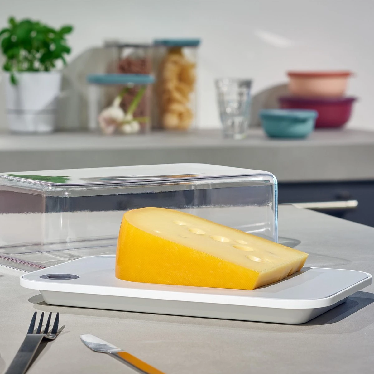 Mepal – Kaasstolp Modula – 2800 Ml – Wit – Inclusief Snijplank – Zicht Op Inhoud – Vershouddoos – Kaasbak