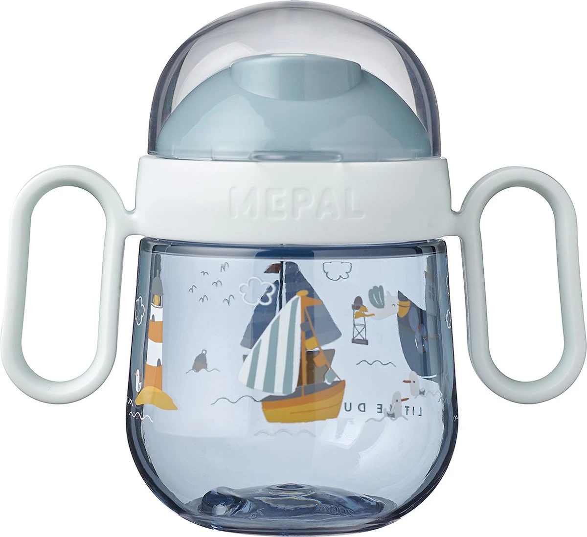 Zelf leren drinken gaat vaak gepaard met flink knoeien. Daarom is de antilekbeker Mepal Mio, in het design sailors bay van Little dutch, echt lekvrij. Ondersteboven, op z’n zijโฆ geen druppel eruit! De drinktuitjes zijn extra kort, dit zorgt voor een gezondere ontwikkeling van mond en gebit. De kinderbeker heeft een drinktuitje aan beide kanten, zodat je kleintje nooit misgrijpt.De lekvrije beker Mepal Mio mag na gebruik in de vaatwasser en is uiteraard BPA vrij. De grote handvatten zorgen ervoor dat de kinder drinkbeker makkelijk vast te houden is. De antilekbeker is geschikt voor baby’s vanaf 6 maanden. De deksels van de antilekbeker, de rietjesbeker en de oefenbeker zijn onderling uitwisselbaar.