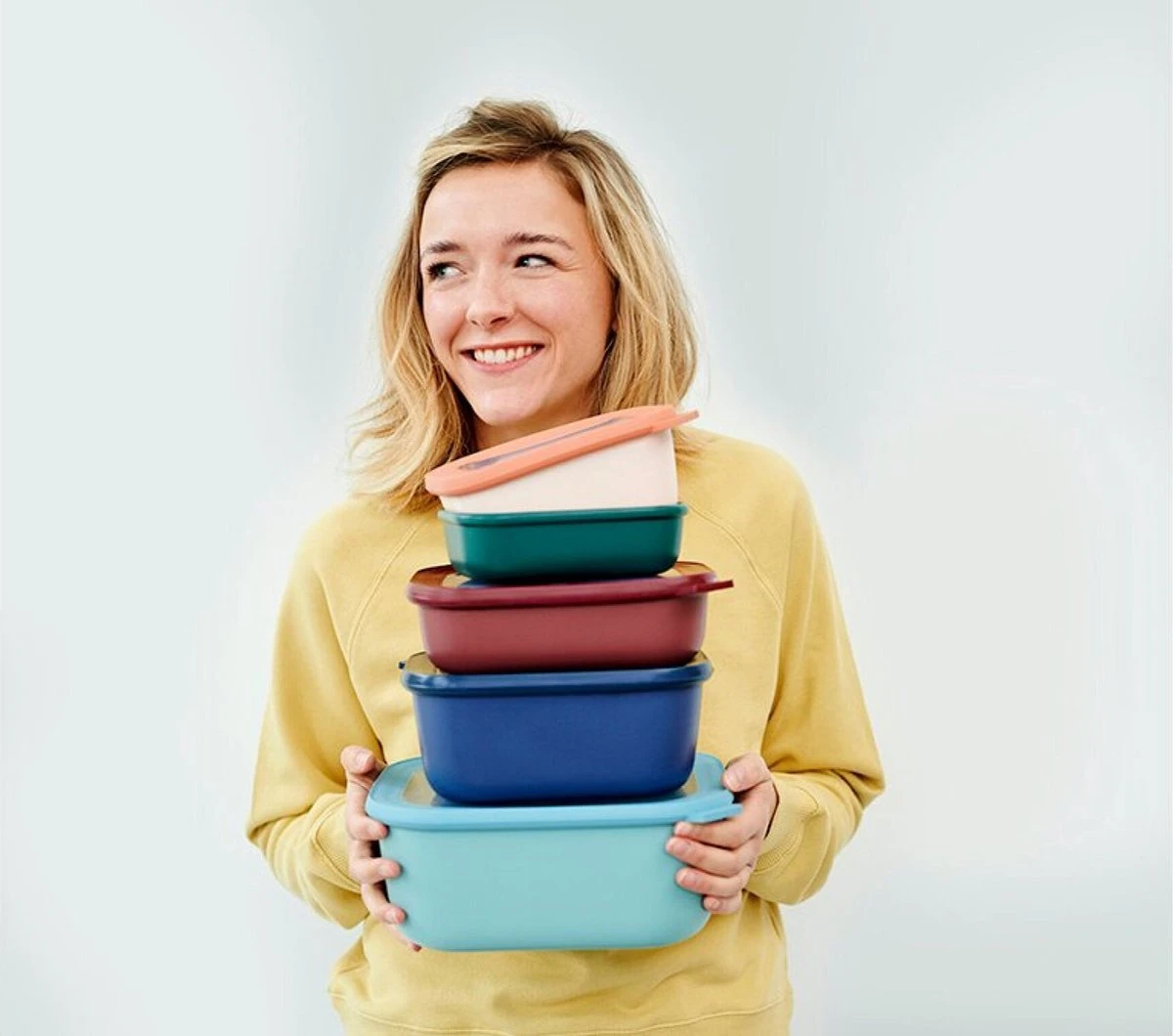 Dankzij de rechthoekige vorm van de vershoudbakjes wordt de ruimte in je koelkast of vriezer optimaal benut. De Mepal bewaardozen mogen zo vanuit de vriezer of koelkast je magnetron in. Opgewarmd? Dan zet je de kom rechtstreeks op tafel.
