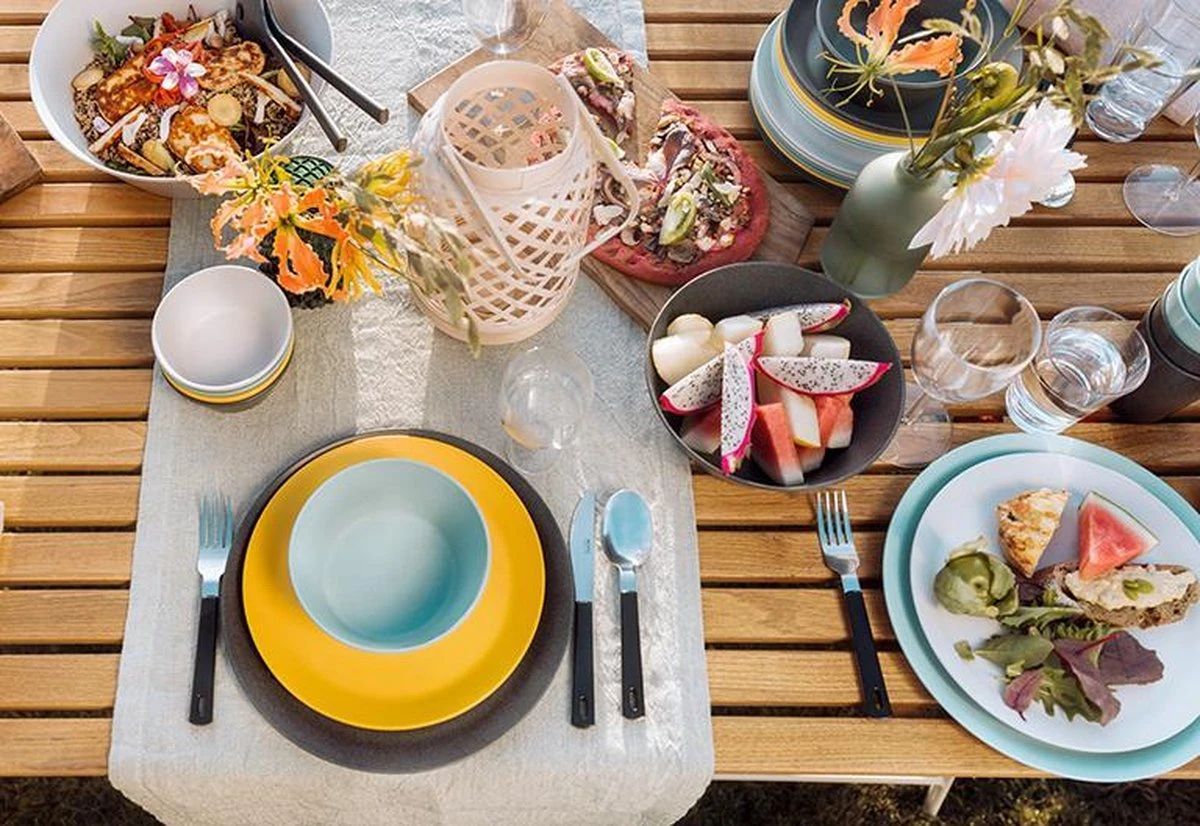 De borden, bekers en schalen mogen na gebruik gewoon in de vaatwasser. Alle onderdelen zijn uiteraard BPA-vrij en licht van gewicht. Het melamine buitenservies is gemaakt voor buitengebruik en kan dus ook tegen een stootje. Wel zo fijn op de camping of je terras! De serviessets hebben verschillende Pebble kleuren die perfect op elkaar zijn afgestemd, zodat jij moeiteloos kunt mixen en matchen.