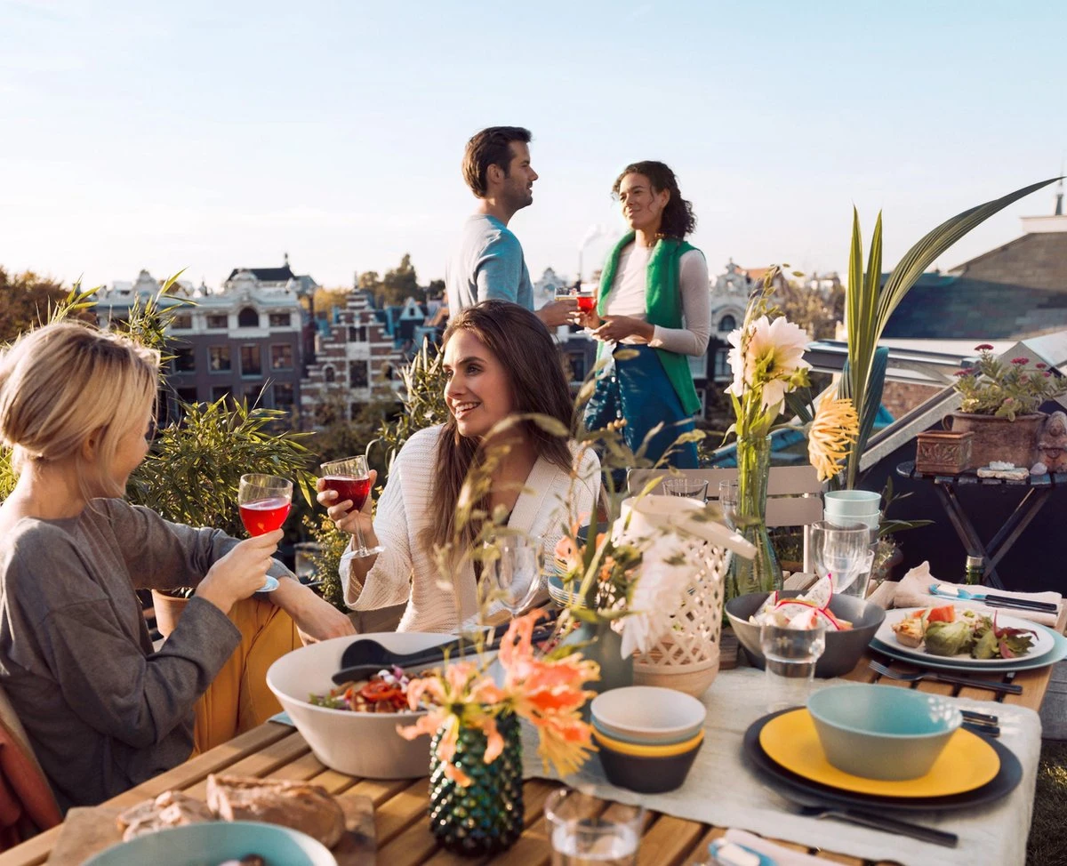 De Bloom serviesset in verschillende Pebble kleuren is hét buitenservies bij uitstek. Moeiteloos maak je van iedere tafel een stijlvolle eettafel. De serviesset is zó stijlvol, dat je hem eigenlijk ook gewoon binnen kunt gebruiken. De buitenservies set heeft een uniek gespikkelde, matte finish en laat zich prachtig mixen. Met het Bloom (buiten) servies heb je (bijna) alle ingrediënten in huis voor een fijne zomerbarbecue of diner op je dakterras. Alleen nog even boodschappen halen!